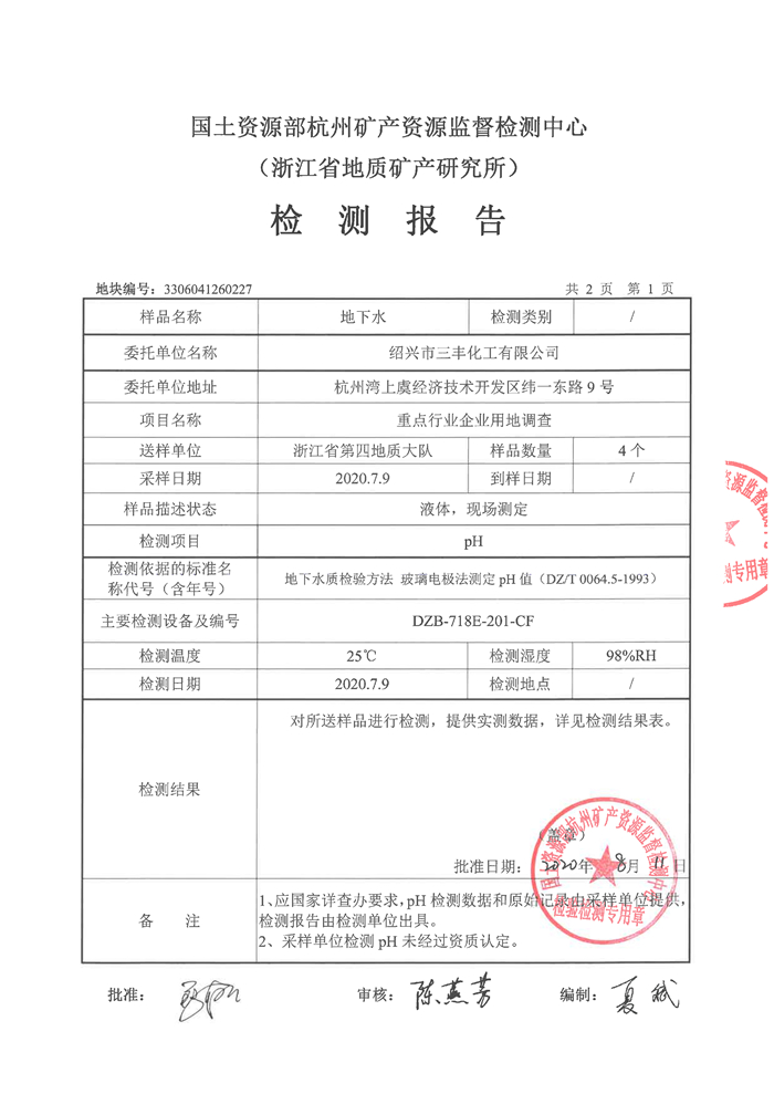上一篇:紹興市三豐化工有限公司土壤檢測報告公示